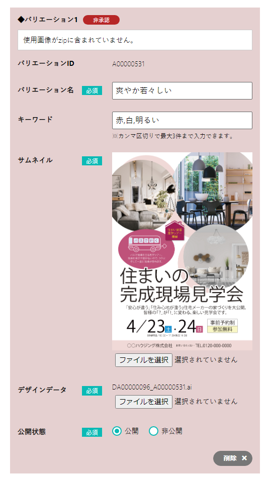 アイデザではバリエーション違いのデザインを複数登録できるようになっています。