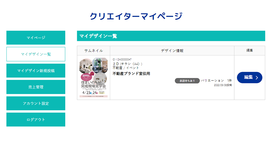 デザインの投稿が完了したら後は承認を待つだけです。